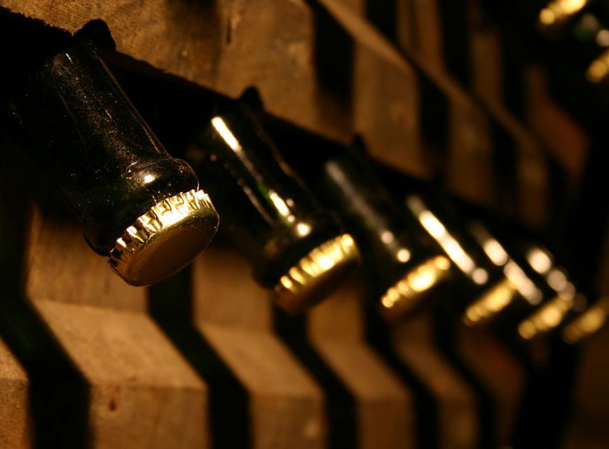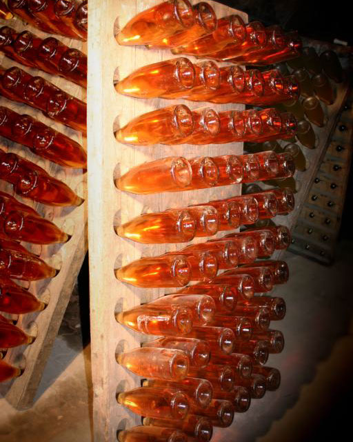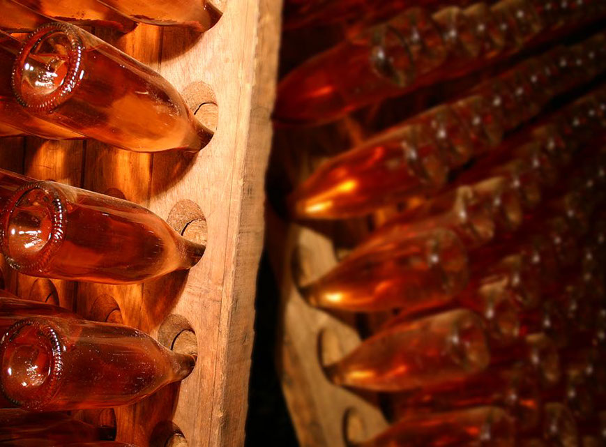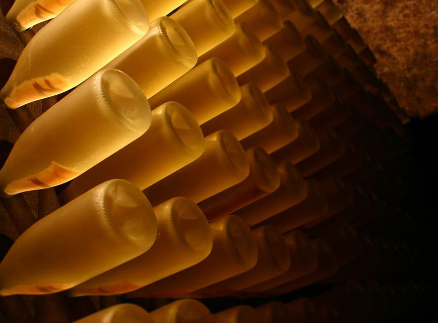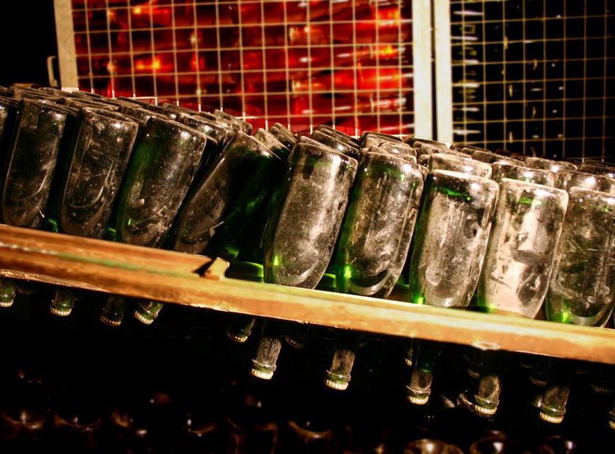Die daraus entstehende Kohlensäure verbindet sich umso inniger mit dem Wein, je länger er in der Flasche (durchschnittlich 18 Monate) lagert. Nach dem Reifeprozess wird die Flasche auf den Kopf gestellt, gerüttelt und gedreht bis sich die Hefe fest im Flaschenhals abgesetzt hat. Der Pfropfen wird eingeeist und schießt beim Öffnen durch den Druck der Kohlensäure heraus.